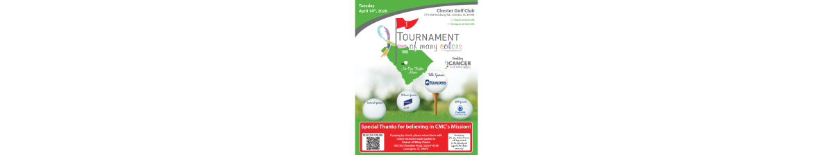Tournament of Many Colors Tournament of Many Colors benefiting Cancer of Mancy Colors Set a Reminder Enter your email address below to receive a reminder message. Email address Select the amount of Days before the event -- Select Days Before Event -- 1 Day 2 Days 3 Days 1 Week Captcha Validation Please complete the Captcha Submit Date and Time Tuesday Apr 14, 2026 April 14th Check-In 8am Shotgun 9am Location Chester Golf Club 770 Old Richburg Rd Chester SC 29706 Set a Reminder Enter your email address below to receive a reminder message. Email address Select the amount of Days before the event -- Select Days Before Event -- 1 Day 2 Days 3 Days 1 Week Captcha Validation Please complete the Captcha Submit Share × Print Email Add to Calendar Facebook Twitter LinkedIn Tell a Friend × Select Calendar Type × Google Yahoo iCal (Outlook, Apple, or other)